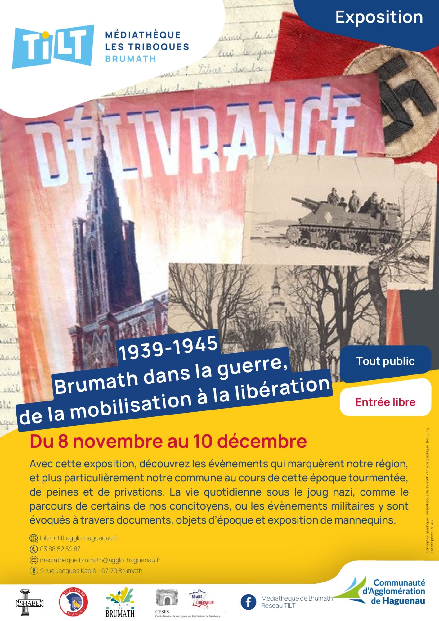 Pour clore cette année marquée par le 80ème anniversaire de la libération de l'Alsace et de la fin de la 2e Guerre mondiale, la Ville de Brumath, la Médiathèque, la Société d'Histoire et d'Archéologie de Brumath et le Souvenir Français proposent une exposition sur les événements qui ont marqué notre région et plus particulièrement la commune de Brumath au cours de cette époque tourmentée, de peines et de privations.