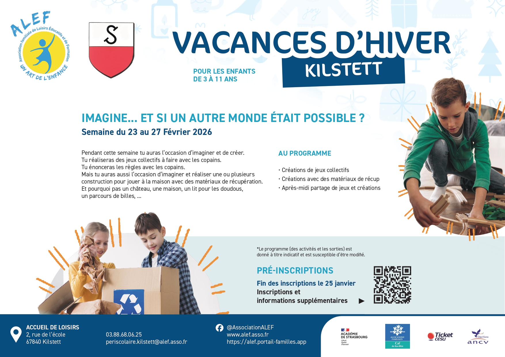 Du 23 au 27 février 2026, les enfants de 3 à 11 ans sont invités à imaginer, créer et jouer ensemble autour du thème : « Et si un autre monde était possible ? »