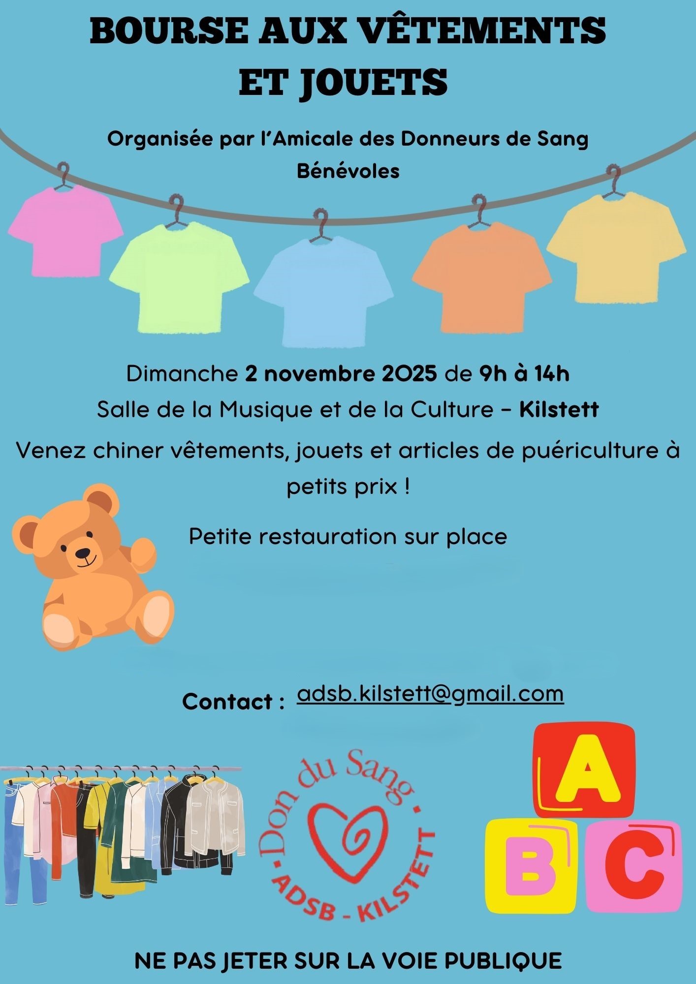 organisé par l'Amicale des Donneurs de Sang Bénévoles, le dimanche 2 novembre 2025, de 9h à 14h , à la Salle de la Musique et de la Culture de Kilstett.