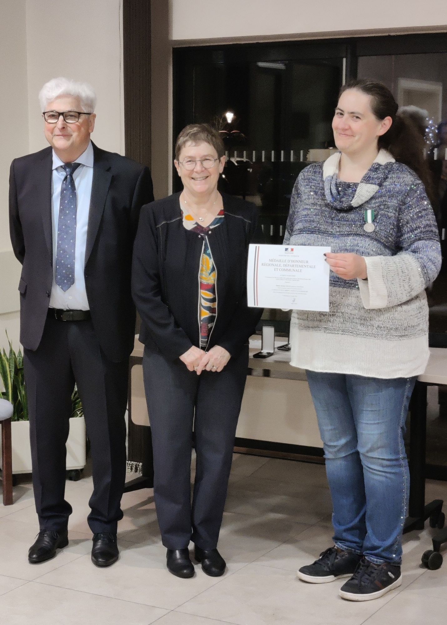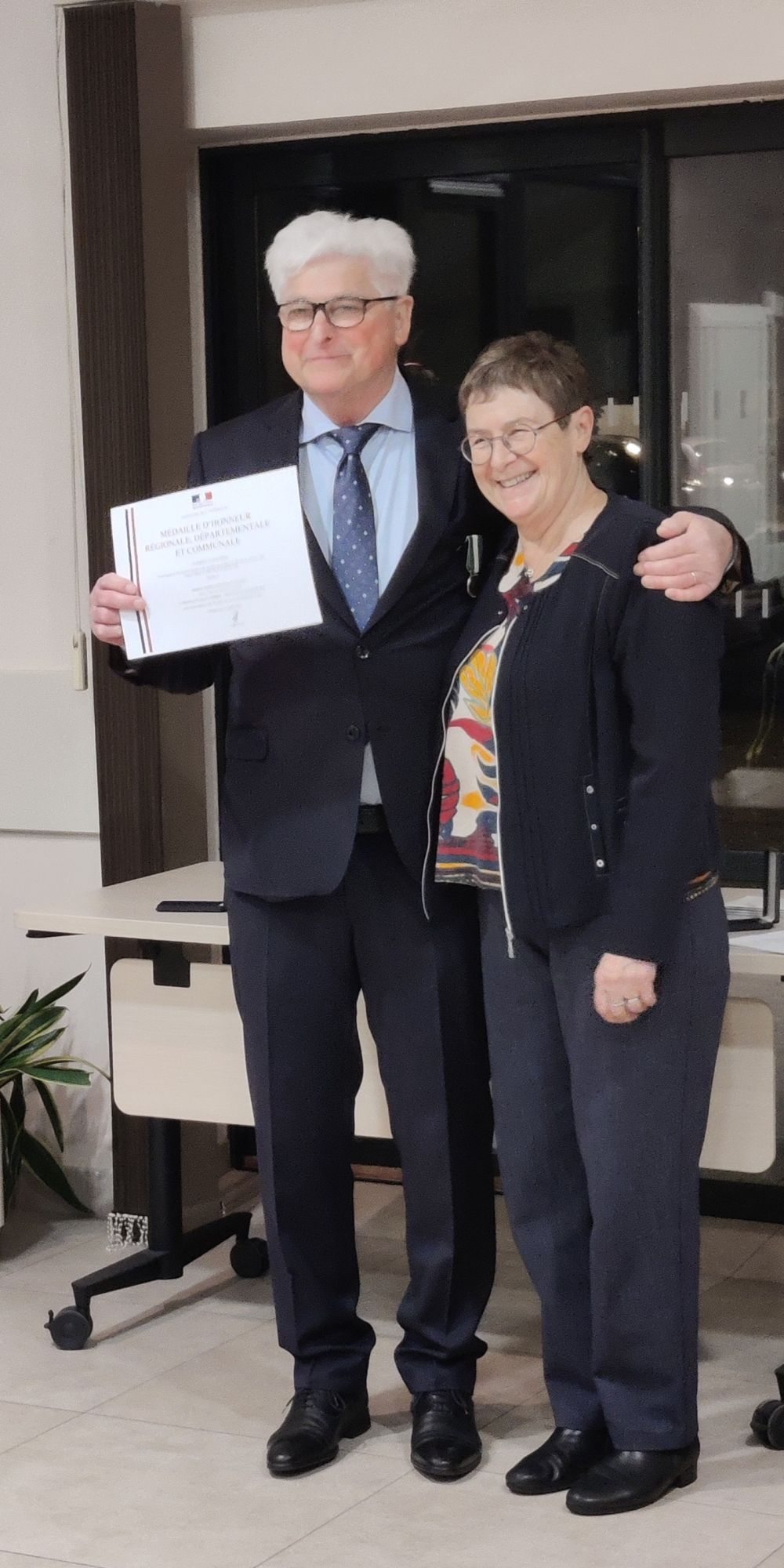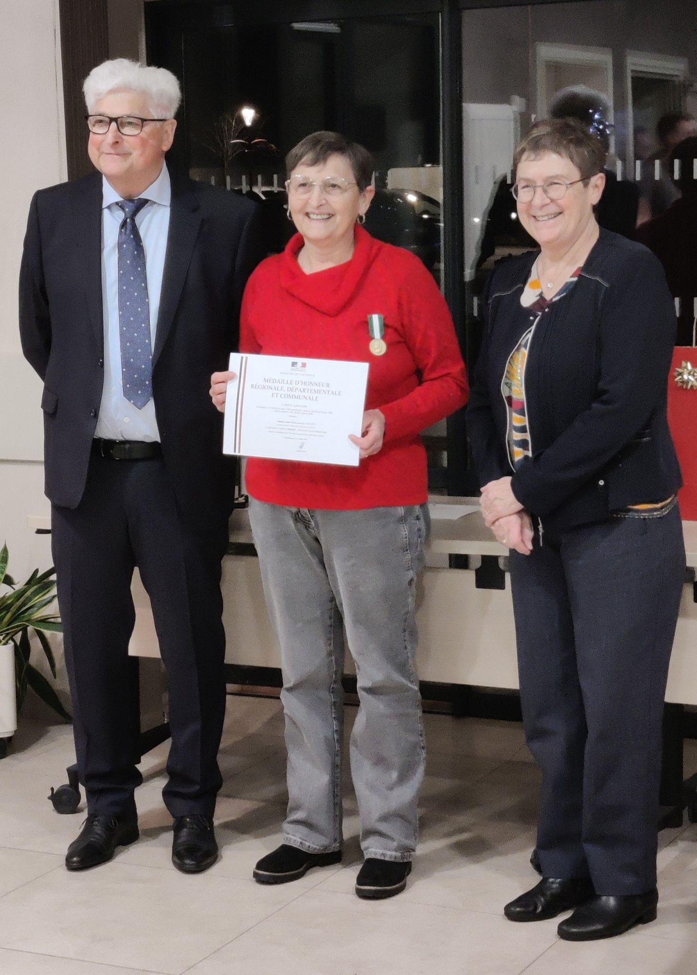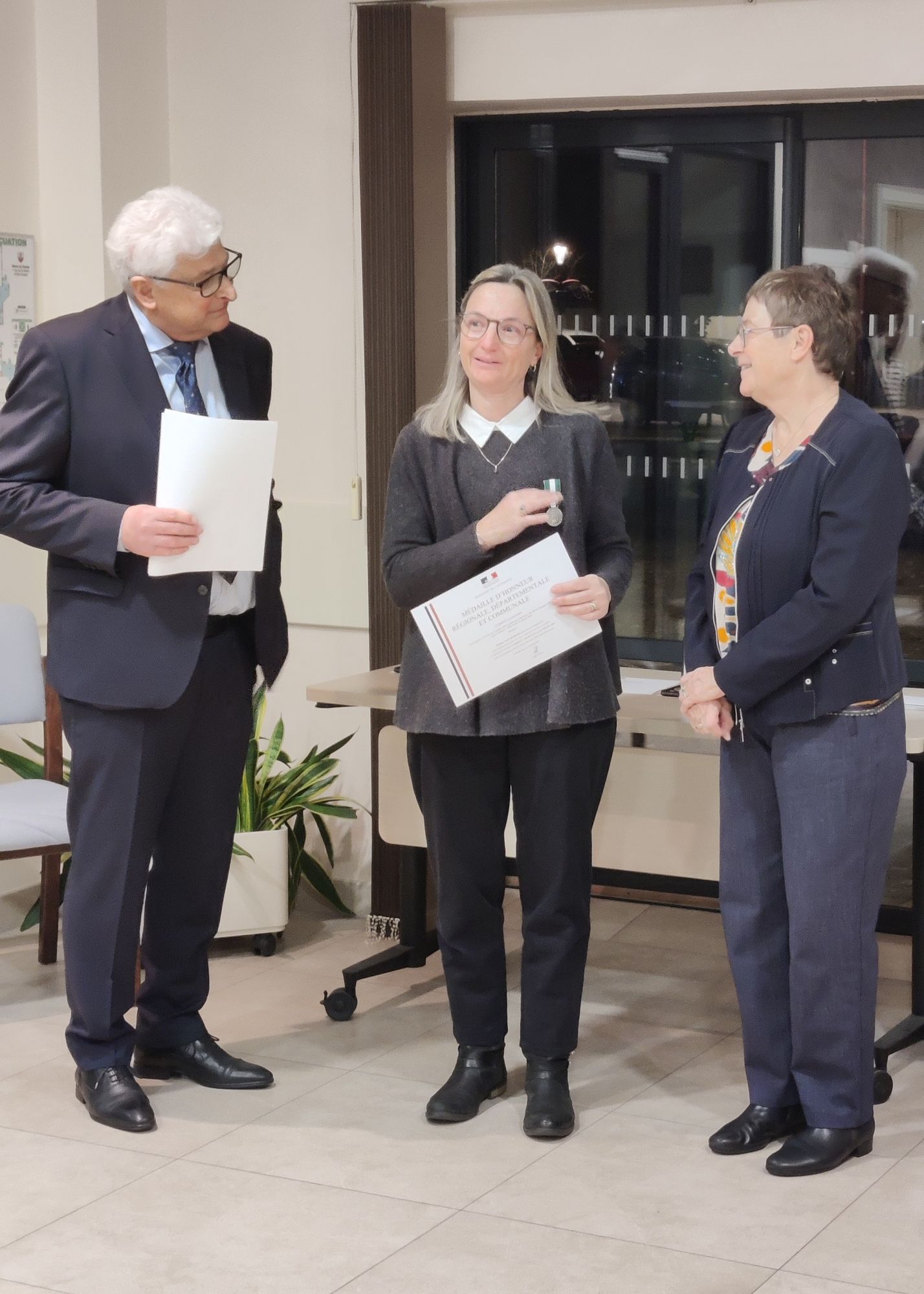 La médaille remise par Mme Christiane Wolfhugel, conseillère d’Alsace, souligne non seulement leurs années de service, mais aussi la qualité de leur travail et leur dévouement au service public.