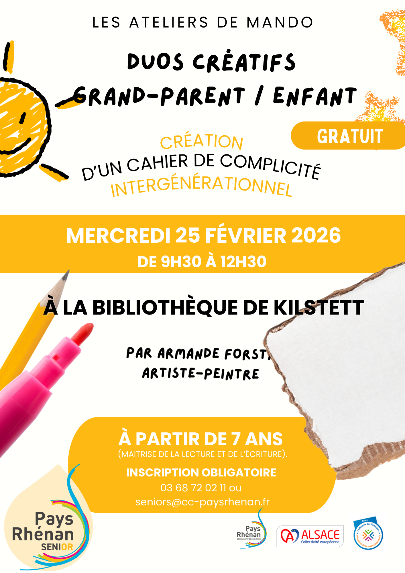 Inscriptions obligatoires au 03.68.72.02.11 ou par mail à seniors@cc-paysrhenan.fr