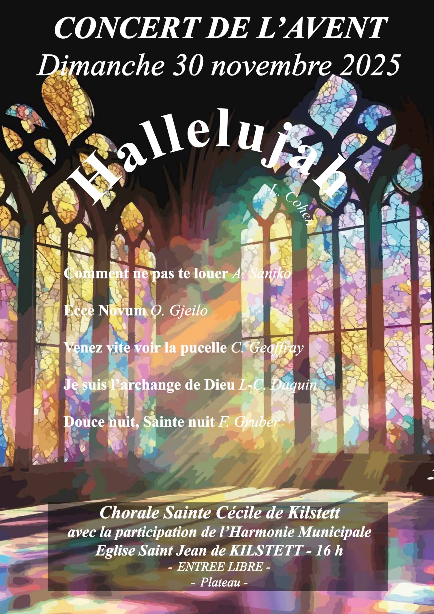 Organisé par la Chorale Sainte Cécile de Kilstett avec la participation de l’Harmonie Municipale le Dimanche 30 novembre, à 16h, à l’Église Saint Jean de Kilstett