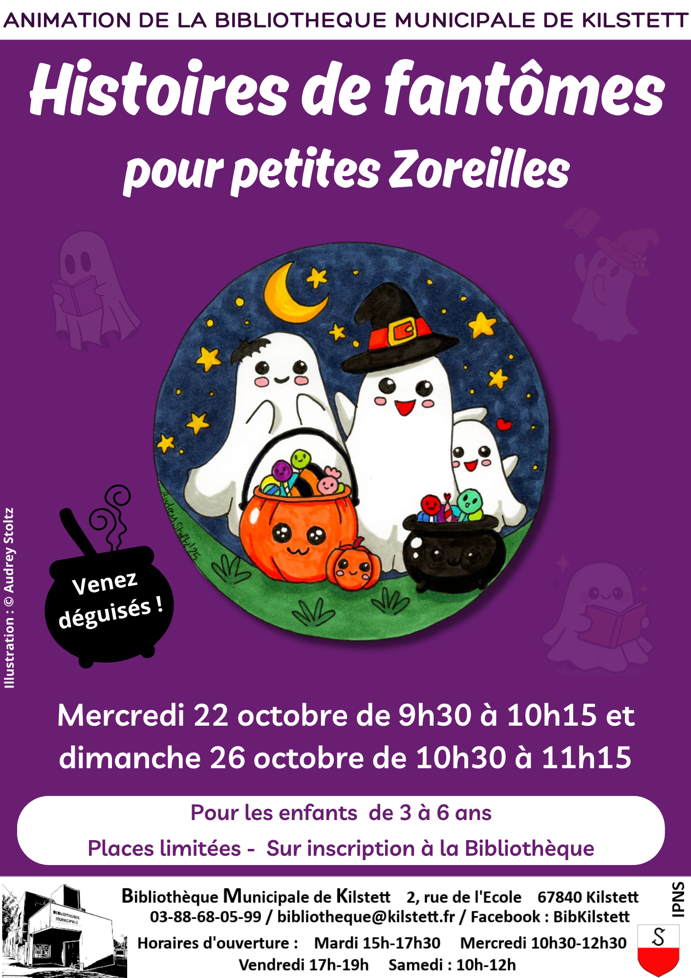 La Bibliothèque de Kilstett organise une animation « Histoires de fantômes pour petites Zoreilles », pour les enfants de 3 à 6 ans à la Bibliothèque :